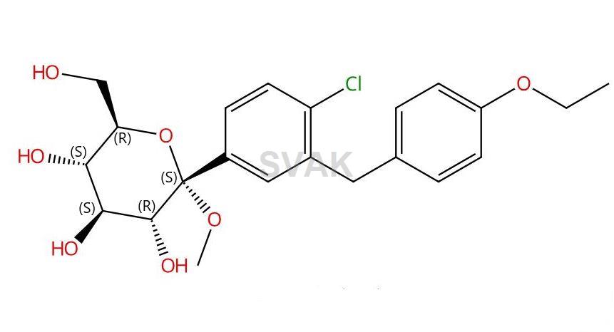 (2S,3R,4S,5S,6R)-2-(4-Chloro-3-(4-ethoxybenzyl)phenyl)-6-(hydroxymethyl)-2-methoxytetrahydro-2H-pyran-3,4,5-triol ; Methyl 1-C-[4-chloro-3-[(4-ethoxyphenyl)methyl]phenyl]-alpha-D-glucopyranoside ; Dapagliflozin Methoxy Pyranose Impurity ; Methoxy Dapagliflozin ; 1alpha-Methoxy Dapagliflozin ; 1alpha-Methyl Dapagliflozin ; Dapagliflozin Methoxy Impurity |