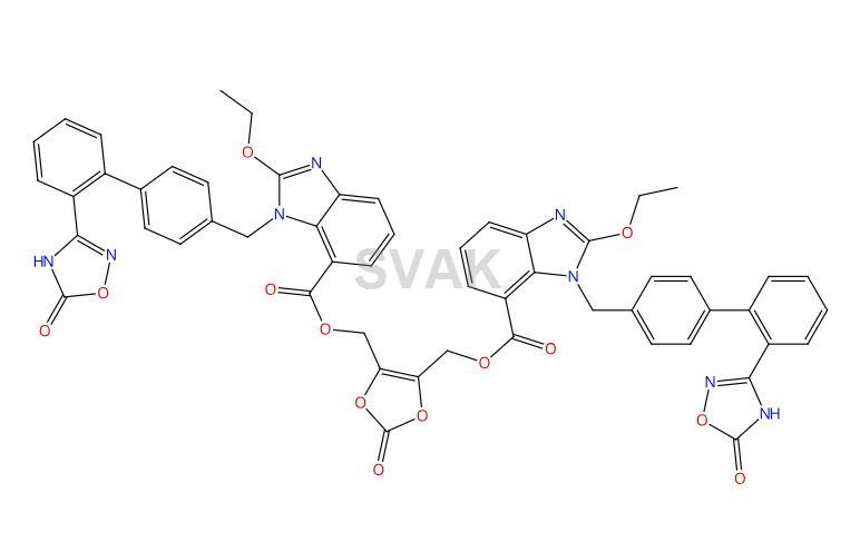 (2-Oxo-1,3-dioxole-4,5-diyl)bis(methylene) bis(2-ethoxy-1-((2’-(5-oxo-4,5-dihydro-1,2,4-oxadiazol-3-yl)-[1,1’-biphenyl]-4-yl)methyl)-1H-benzo[d]imidazole-7-carboxylate) ; 1H-Benzimidazole-7-carboxylic acid, 1-[[2-(2,5-dihydro-5-oxo-1,2,4-oxadiazol-3-yl)[1,1-biphenyl]-4-yl]methyl]-2-ethoxy-, 7,7-[(2-oxo-1,3-dioxole-4,5-diyl)bis(methylene)] ester |