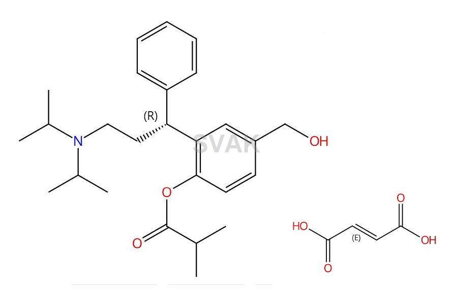 (R)-Fesoterodine Fumarate ; (R)-2-(3-(Diisopropylamino)-1-phenylpropyl)-4-(hydroxymethyl)phenyl isobutyrate fumarate ; 2-Methylpropanoic acid-2-[(1R)-3-[bis(1-methylethyl)amino]-1-phenylpropyl]-4-(hydroxymethyl)phenyl ester, fumarate salt ; 2-Methylpropanoic acid 2-[(1R)-3-[bis(1-methylethyl)amino]-1-phenylpropyl]-4-(hydroxymethyl)phenyl ester (2E)-2-butenedioate ; Fesoterodine Fumarate ; Toviaz |