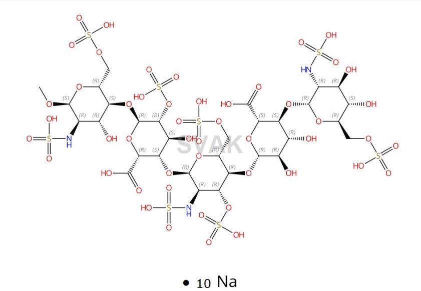 (2S,3S,4R,5R,6R)-6-(((2R,3R,4R,5R,6R)-6-(((2R,3S,4S,5R,6R)-2-Carboxy-4-hydroxy-6-(((2R,3S,4R,5R,6S)-4-hydroxy-6-methoxy-5-(sulfoamino)-2-((sulfooxy)methyl)tetrahydro-2H-pyran-3-yl)oxy)-5-(sulfooxy)tetrahydro-2H-pyran-3-yl)oxy)-5-(sulfoamino)-4-(sulfooxy)-2-((sulfooxy)methyl)tetrahydro-2H-pyran-3-yl)oxy)-3-(((2R,3R,4R,5S,6R)-4,5-dihydroxy-3-(sulfoamino)-6-((sulfooxy)methyl)tetrahydro-2H-pyran-2-yl)oxy)-4,5-dihydroxytetrahydro-2H-pyran-2-carboxylic acid, decasodium salt ; Fondaparinux Sodium ; Arixtra ; Fondaparin Sodium ; IC 85158 ; IC 851589 ; Org 31540 ; SR 90107A ; Xantidar |