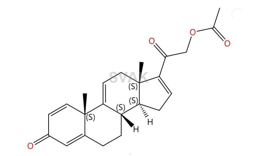 Tetraene-21-acetate ; 21-(Acetyloxy)-pregna-1,4,9(11),16-tetraene-3,20-dione ; 3,20-Dioxopregna-1,4,9(11),16-tetraen-21-yl Acetate ; 21-Hydroxypregna-1,4,9(11),16-tetraene-3,20-dione 21-Acetate ; 3,20-Dioxopregna-1,4,9(11),16-tetraen-21-yl Acetate ; 2-((10S,13S,14S)-10,13-Dimethyl-3-oxo-6,7,8,10,12,13,14,15-octahydro-3H-cyclopenta[a]phenanthren-17-yl)-2-oxoethyl acetate ; 21-Hydroxy-1,4,9(11)-tetraene 21-acetate ;2-((8S,10S,13S,14S)-10,13-dimethyl-3-oxo-6,7,8,10,12,13,14,15-octahydro-3H-cyclopenta[a]phenanthren-17-yl)-2-oxoethyl acetate ; Prednisone Impurity |